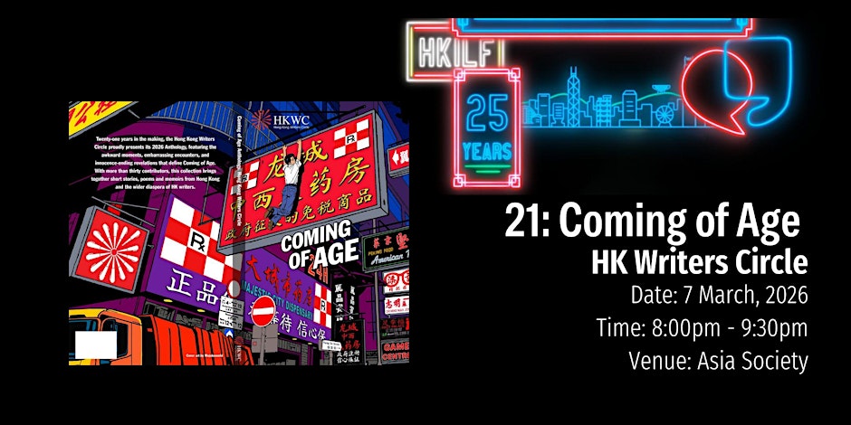 In an exciting break with tradition, the Hong Kong Writers Circle‘s HKILF launch of its 21st anthology Coming of Age, edited by dream team Jay Oatway and Julian Lyden, will be held at the Asia Society on Sat 7 March from 8-9.30pm. My contribution is three themed humorous pieces of flash: Ageless. The HKWC‘s last two lit fest launches of Score and Lost in Transition sold out fast so hurry, hurry to grab your tix!