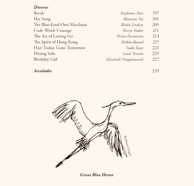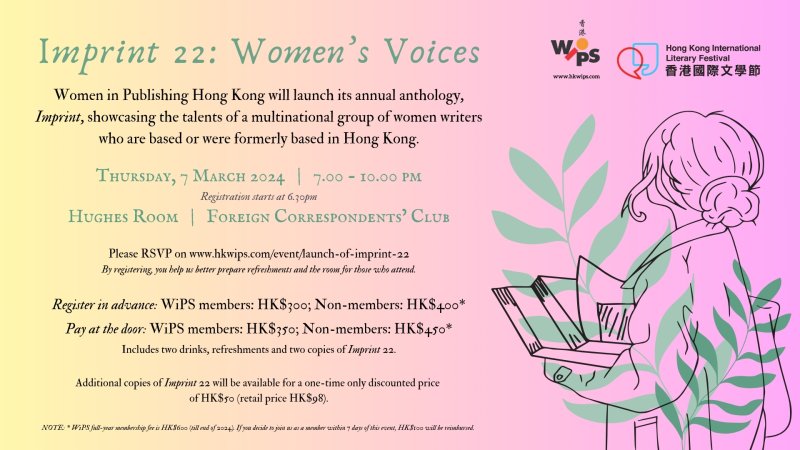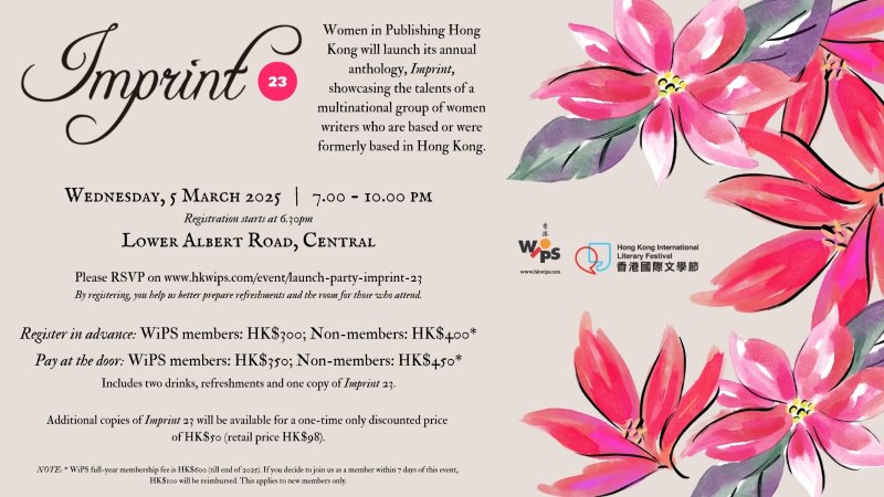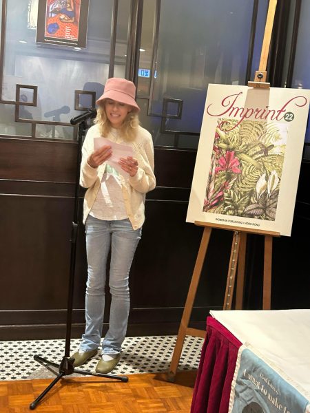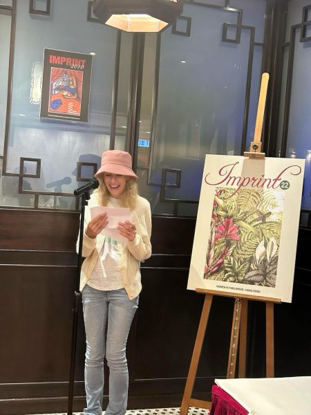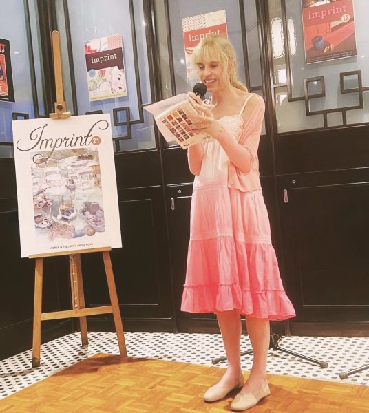 She helped edit and contributed humorous short stories and an absurdist poem to Lost in Transition, which launched at Hong Kong Lit Fest 2024. Her humorous short stories and essays were published in the Women in Publishing Society‘s anthologies Imprint 21, Imprint 22 and Imprint 23, which launched at the Hong Kong International Lit Fest in 2023, 2024 and 2025. She performed Bake Fail in 2023, The Snide Sniper in 2024 and A Sting in the Tail in 2025. She also read one of her two humorous flash fiction pieces from Score at the 2025 festival. In 2026 she contributed humour, musings and art to Coming of Age and Imprint 24. Both anthologies launched at the HK Int Lit Fest 2026. She read at both events.