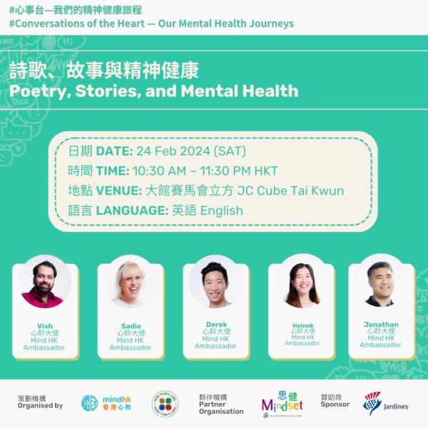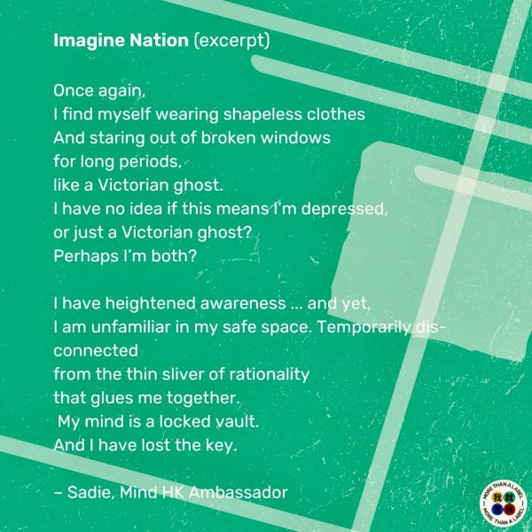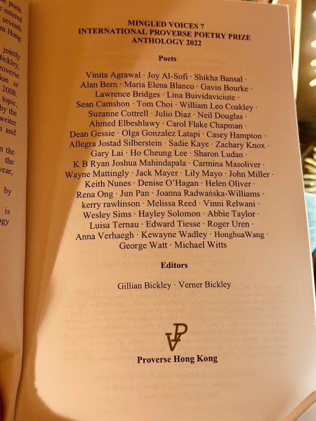 Poet laureate of her apartment, Sadie’s poems received places and publication in the 2020, 2022, 2023 and 2024 Proverse Poetry Prize anthologies Mingled Voices 5, Mingled Voices 7 and Mingled Voices 8. In 2021 she read a poem at the HKU Libraries Reading Club. She shared stories and poetry inspired by mental health as an ambassador at Mind HK‘s events Poetry for Mental Health: The Healing Power of Words and Conversations of the Heart. She was one of three poets taking part in Mind HK‘s 2024 Hong Kong Lit Fest event Poetry, Stories and Mental Health. Two of her poems were published in zine The Tentacle, which launched at HKILF 2025. Four of her poems were published in the Spring 2026 edition of American literary journal The Awakenings Review.