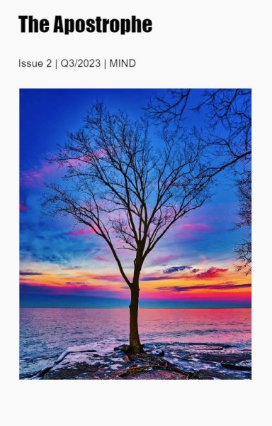 Her conversation with fine artist George Tang Kwok-wing was published in Cha: An Asian Literary Journal Oct 2025. Her conversation with artist Sai Pradhan was published by Cha March 2026. Her review of Nifraz Rifaz‘s debut novel Paper Plane was published by The Hooghly Review Dec 2025 and her conversation with the author was published by Cha April 2026. She’s art editor and occasional art contributor for The Apostrophe.